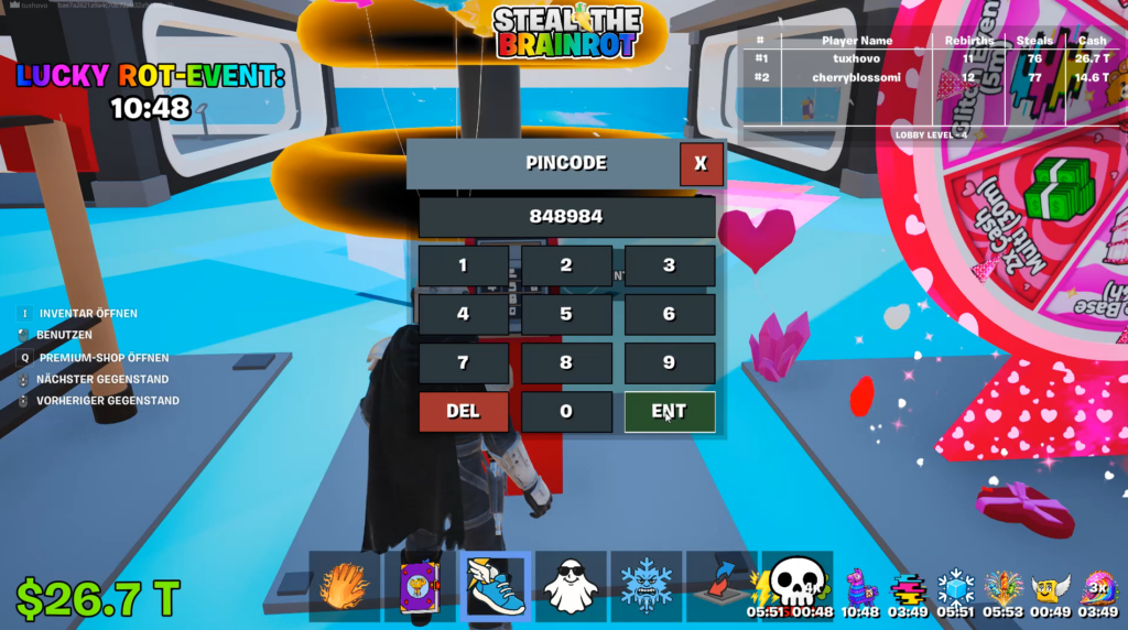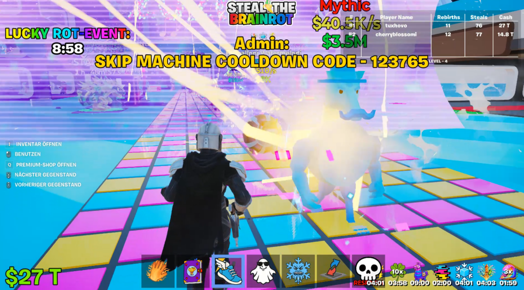 In der Fortnite Map „Steal the Brainrot“ beschleunigen Codes deinen Fortschritt massiv. Du erhältst dadurch seltene Brainrots, überspringst Wartezeiten oder erhöhst dein Glück beim Upgraden.